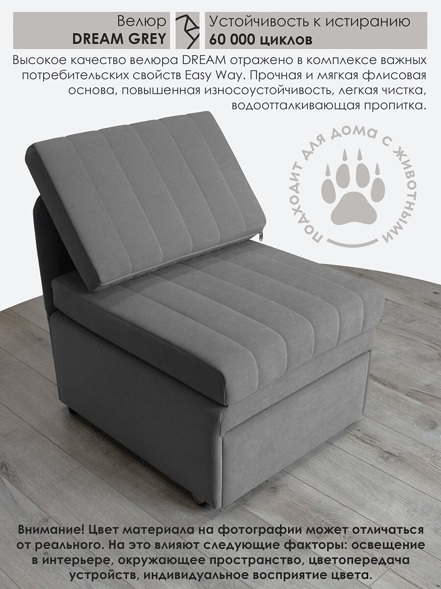 Кресло-кровать Миник 3в1, спальное место 65х187 см, с ящиком, выкатной механизм трансформации, велюр Dream Grey: сравнение цен, характеристики, фото, актуальное наличие и цены.