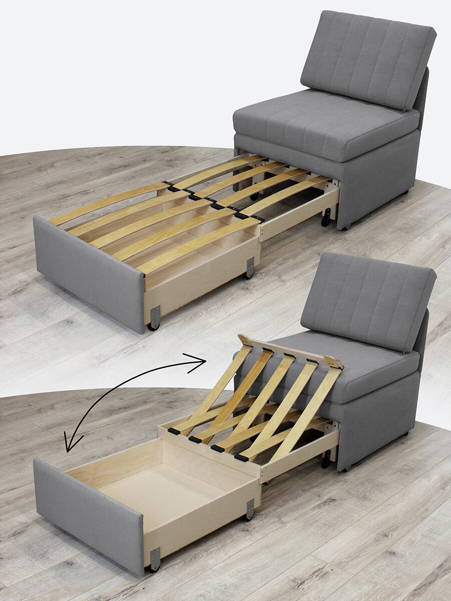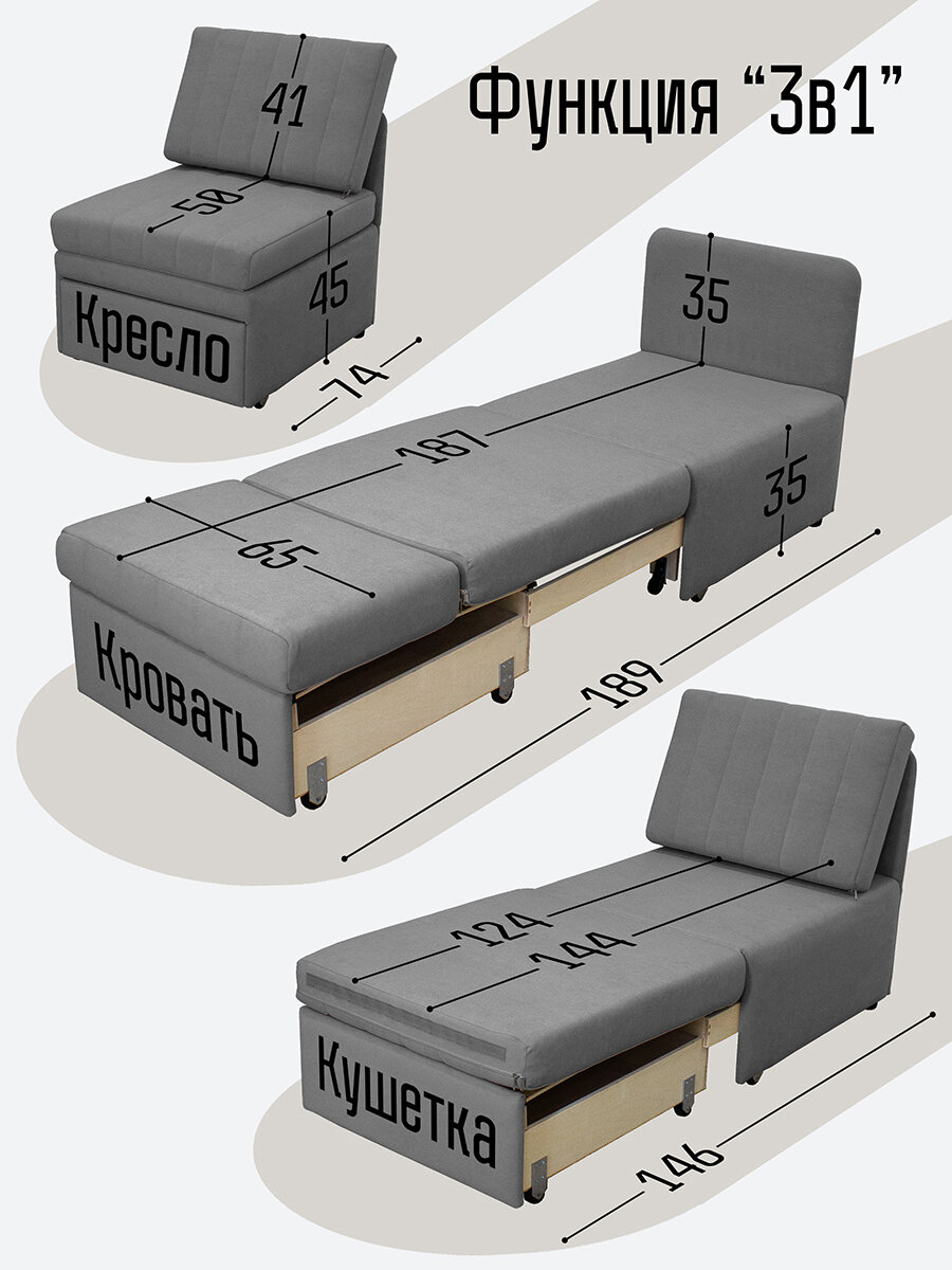 Купить Кресло-кровать Миник 3в1, спальное место 65х187 см, с ящиком, выкатной механизм трансформации, велюр Dream Grey с доставкой по всей России.