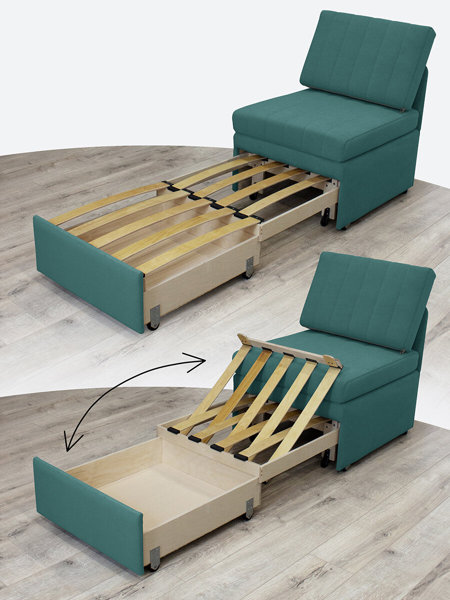 Обращаем Ваше внимание, что в разложенном виде кресло-кровать может скользить на глянцевом полу, т. к. стоит на двух ножках и колесах. Размер и конструкция колес не предполагает наличие стопора (тормоза). В комплект входят два антискользящих подпятника, которые нужно приклеить на задние ножки.