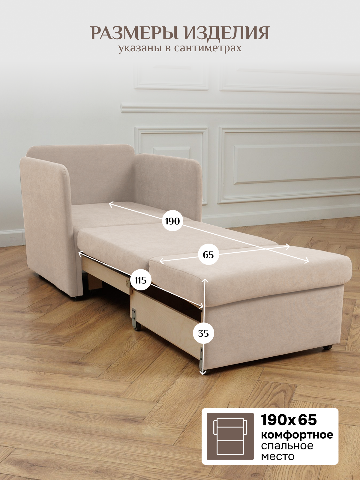 Купить Кресло-кровать на балкон Кресло Brendoss 506 раскладное, с подлокотниками, материал износостойкий велюр, цвет бежевый с доставкой по всей России.