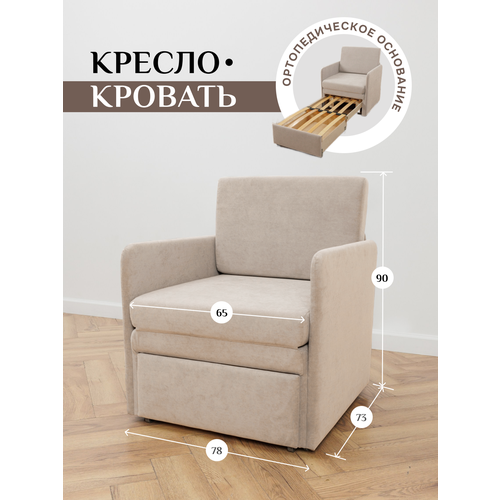 Купить Кресло-кровать на балкон Кресло Brendoss 506 раскладное, с подлокотниками, материал износостойкий велюр, цвет бежевый с доставкой по всей России.
