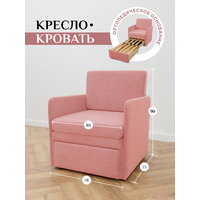 Кресло-кровать на балкон Кресло Brendoss 506 раскладное, с подлокотниками, материал износостойкий велюр, цвет розовый
