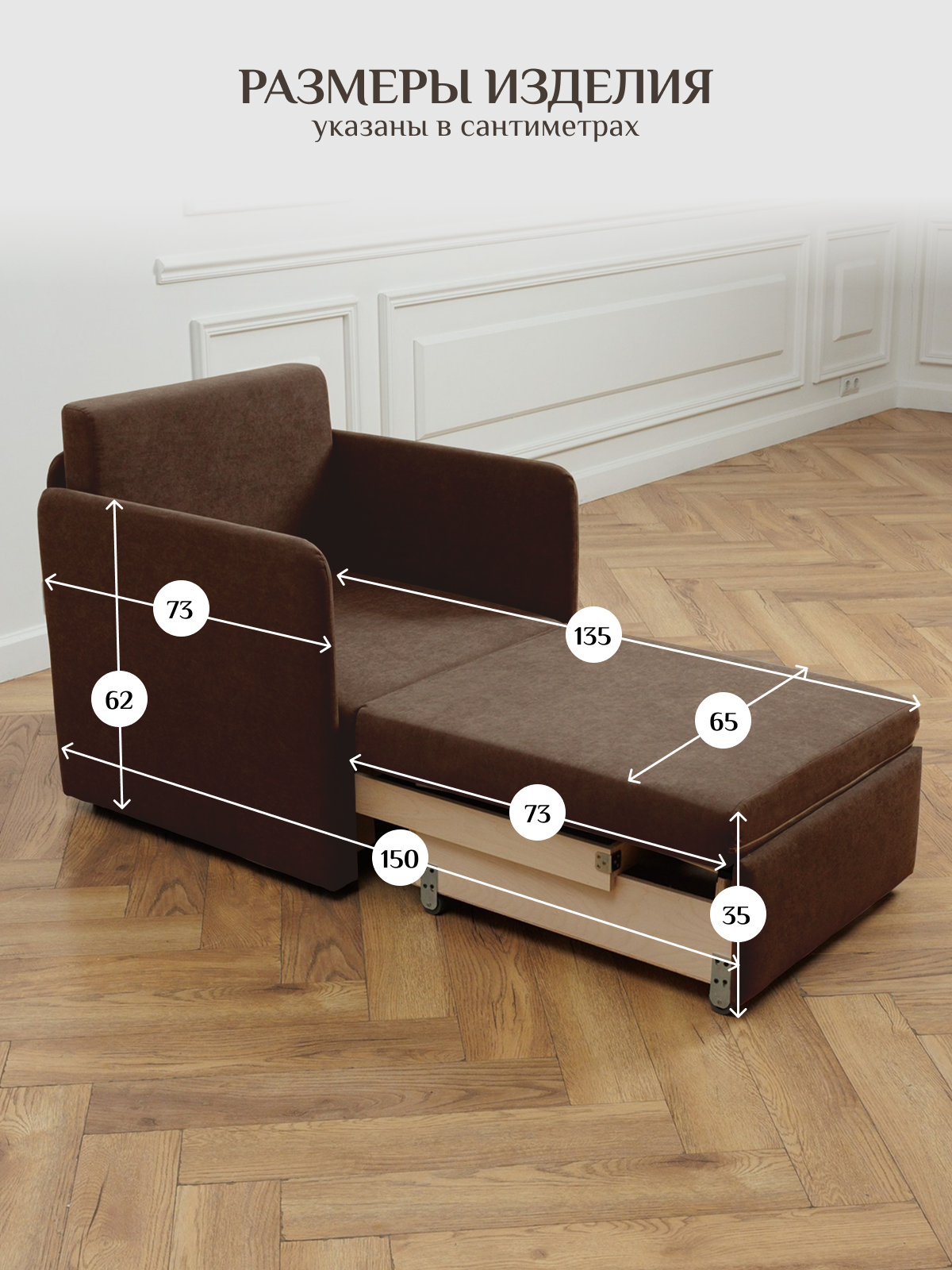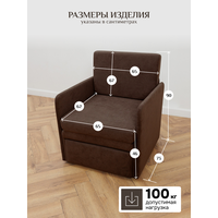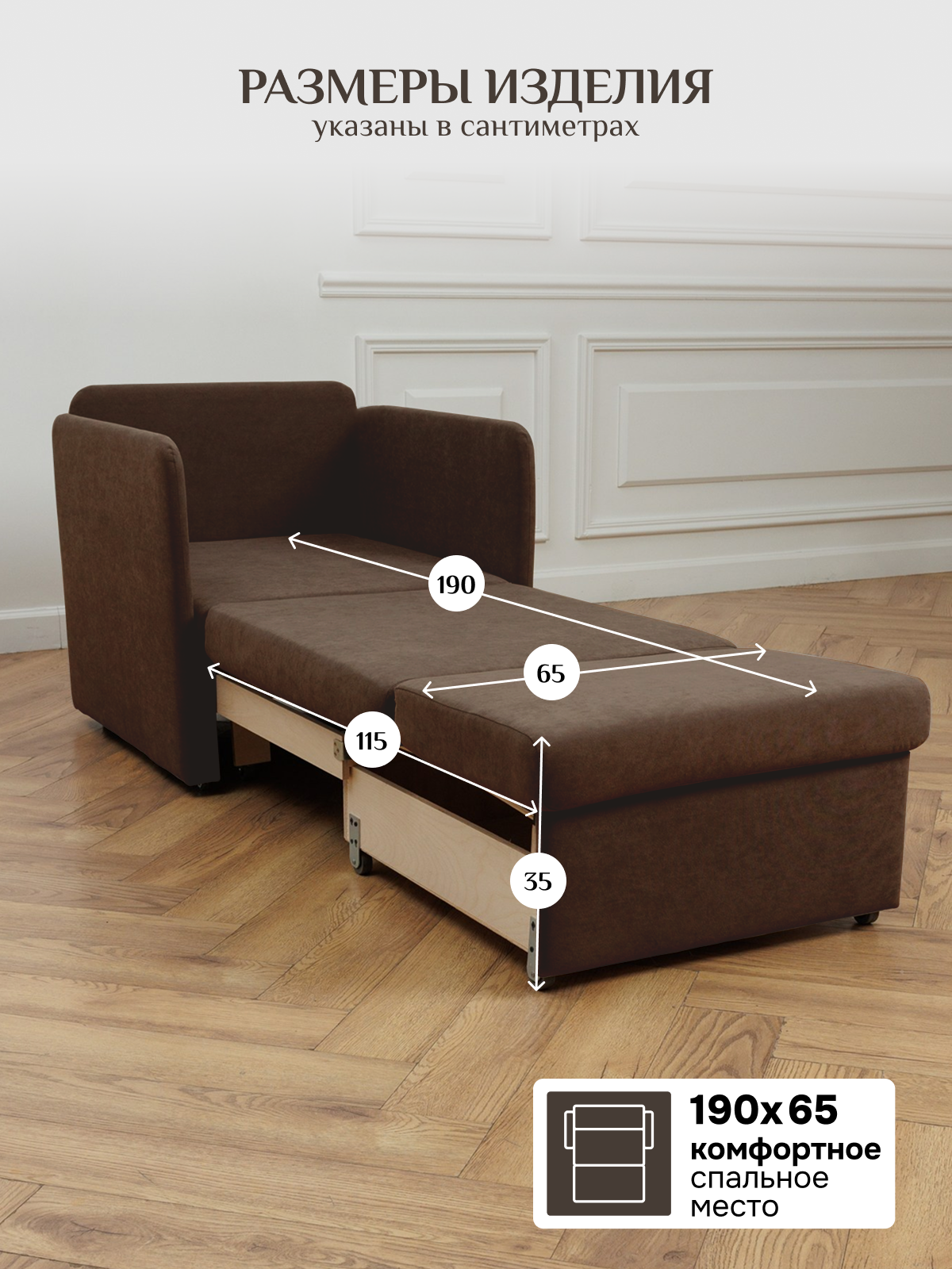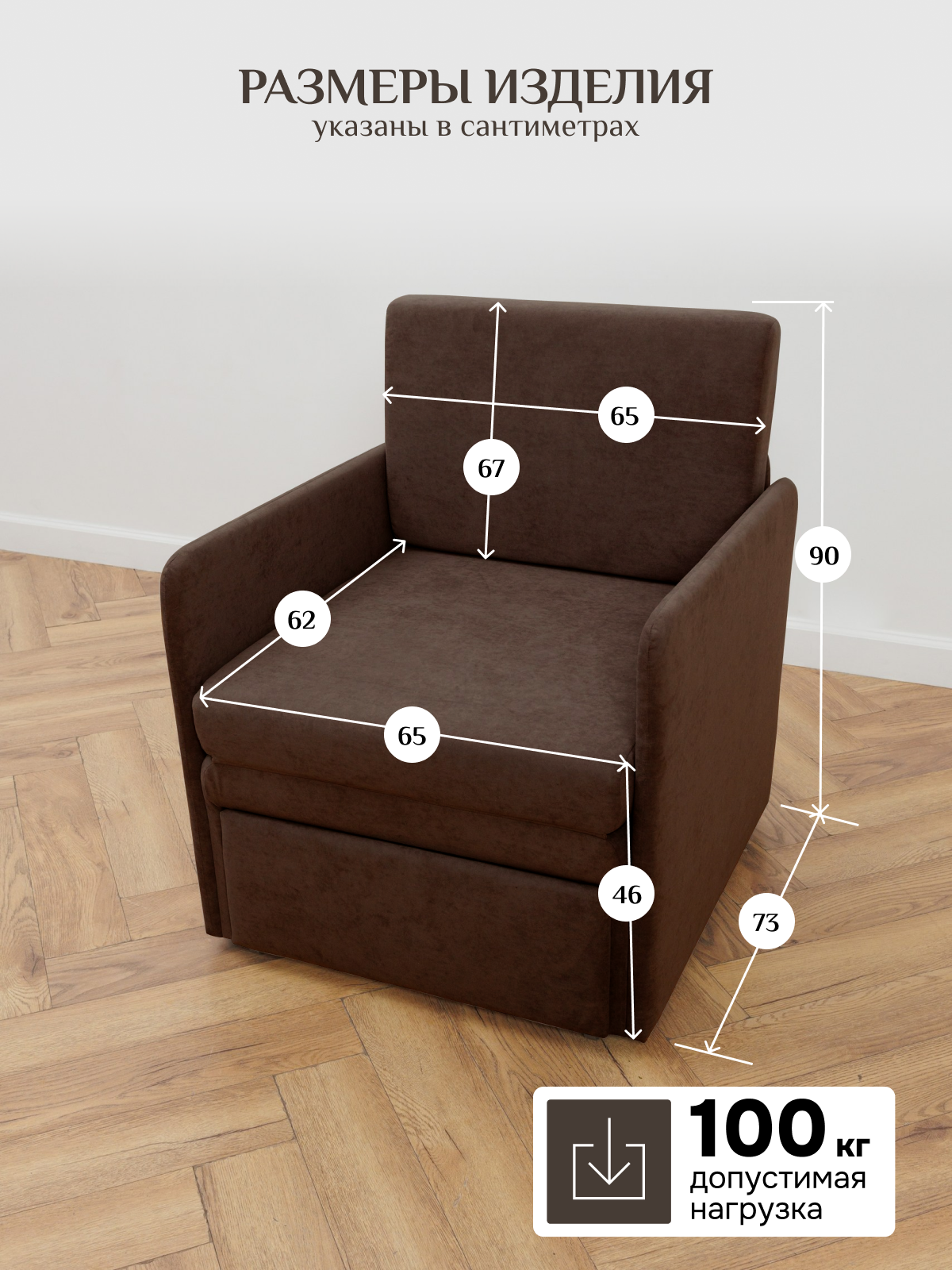 Кресло-кровать на балкон Кресло Brendoss 506 раскладное, с подлокотниками, материал износостойкий велюр, цвет шоколадный
