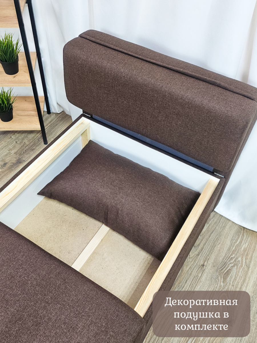 | Особенности | без колесиков, без подлокотников, с ножками, с подушкой, с ящиком для белья |