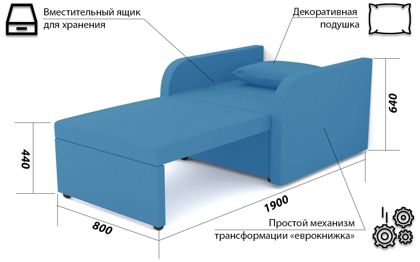 Кресло кровать Некст с подлокотниками EDLEN, рогожка azure, 96х77х105 см: сравнение цен, характеристики, фото, актуальное наличие и цены.