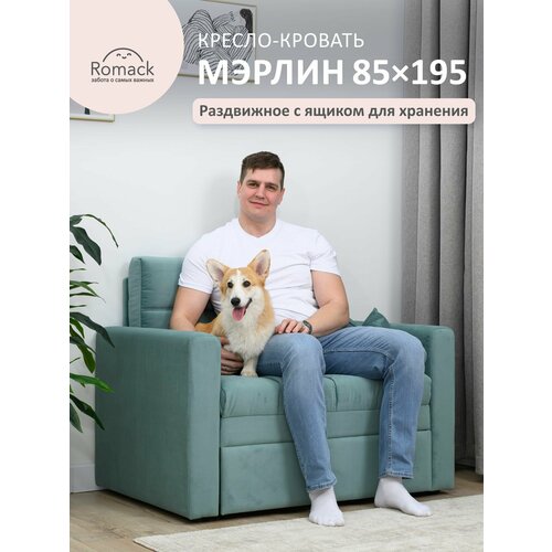 Купить Кресло-кровать раскладное 85х195 Romack Merlin Мята зеленый с ящиком для хранения с доставкой по всей России.