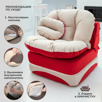 Кресло трансформер комплектуется декоративной подушкой, которую можно, при желании, подложить под спину или голову. Швы подушки надежно закреплены, благодаря чему наполнитель всегда будет внутри.