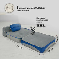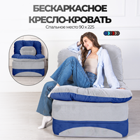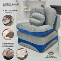 Кресло кровать раскладное, бескаркасное 90*95 см с матрасом Клиффорд, спальное место 90*230 см, синее с серым: сравнение цен, характеристики, фото, актуальное наличие и цены.