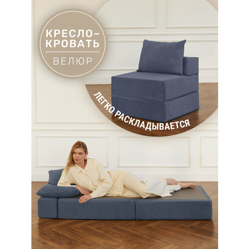Купить Кресло кровать раскладное Laavi Home, размер ХXXХL, мебельный велюр, пыльный синий с доставкой по всей России.