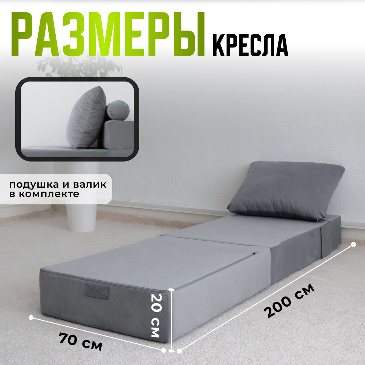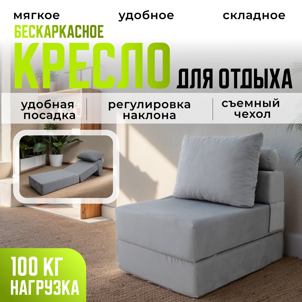 Купить Кресло кровать раскладное Оксфорд от Div-one, 70*90 см, бескаркасное, серое с доставкой по всей России.