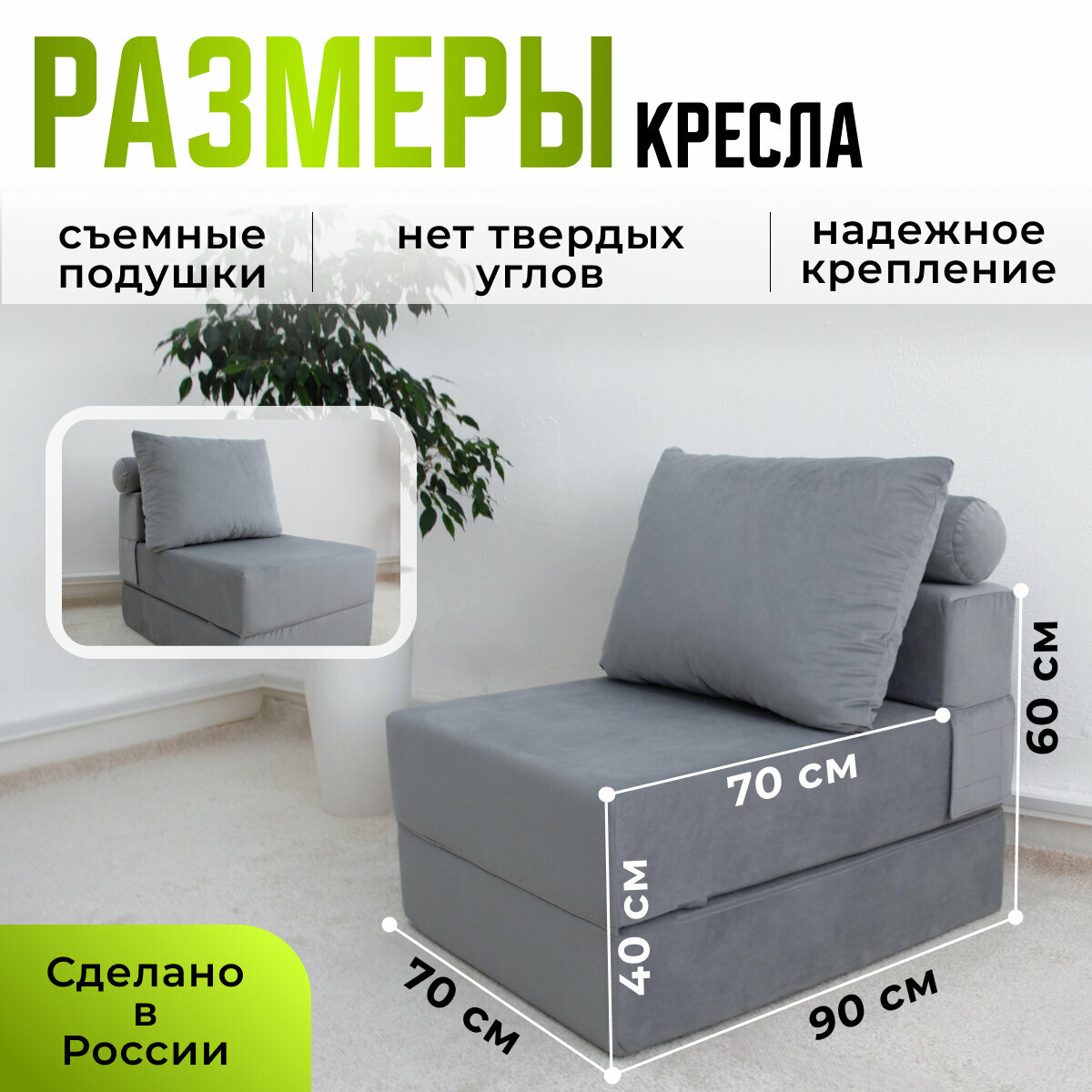 Купить Кресло кровать раскладное Оксфорд от Div-one, 70*90 см, бескаркасное, серое с доставкой по всей России.