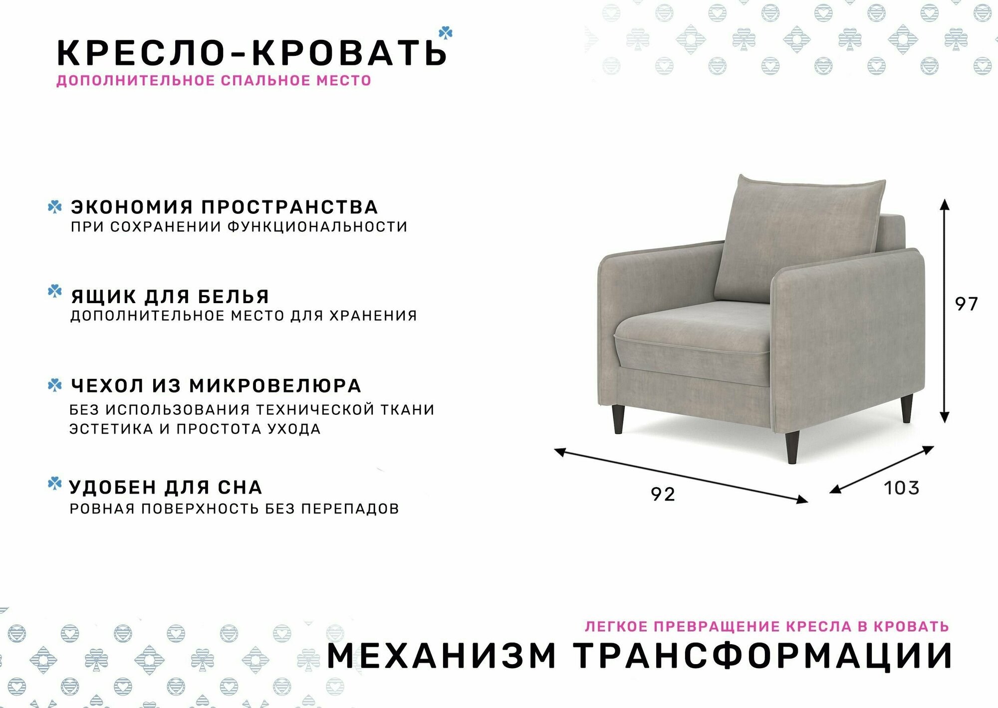 Кресло-кровать раскладное PUSHE Фьорд Smart 70, велюр, светло-серый Velutto 08: сравнение цен, характеристики, фото, актуальное наличие и цены.