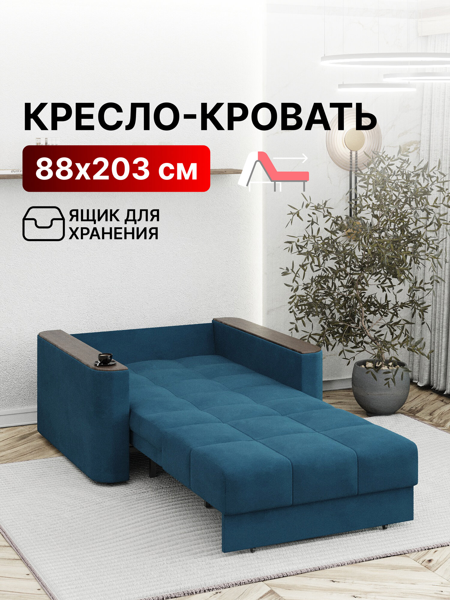 Кресло-кровать с ящиком раскладное Аккордеон, Беспружинное, 88х203, Валенсия, велюр синий: сравнение цен, характеристики, фото, актуальное наличие и цены.