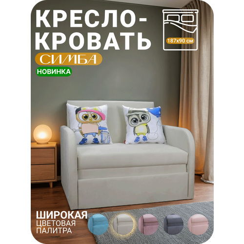 Кресло-кровать Симба комплектуется двумя декоративными подушками, которые идут в комплекте. Изделие приходит в собранном виде, что не требует дополнительного времени и сил на сборку.