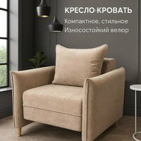 Кресло-кровать в современном стиле, бежевое, мягкие подлокотники, с ящиком, велюр, 190х60х82 см: сравнение цен, характеристики, фото, актуальное наличие и цены.
