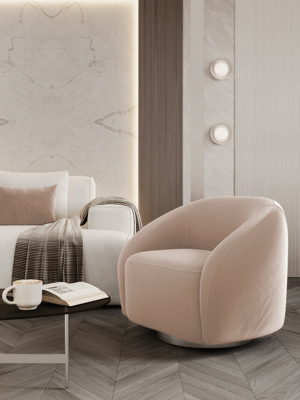 Купить Кресло крутящееся ZAFFIRO премиум дизайн, флок, серебряное основание с доставкой по всей России.