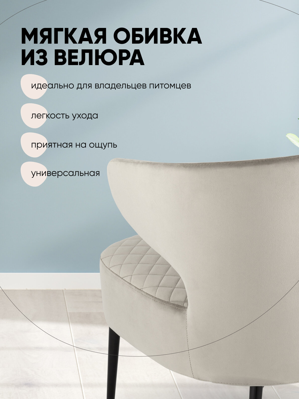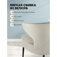 Современное комфортное кресло для отдыха и релакса. Обивка выполнена из велюра - износостойкий и простой в уходе материал. Внутренняя сторона обивки украшена ромбовидной строчкой. Мягкое сиденье шириной 61 см и спинка с оригинальными подлокотниками обеспечивают удобство при длительном отдыхе. Металлические ножки оснащены подпятниками, которые защищают напольные покрытия от царапин и препятствуют скольжению.