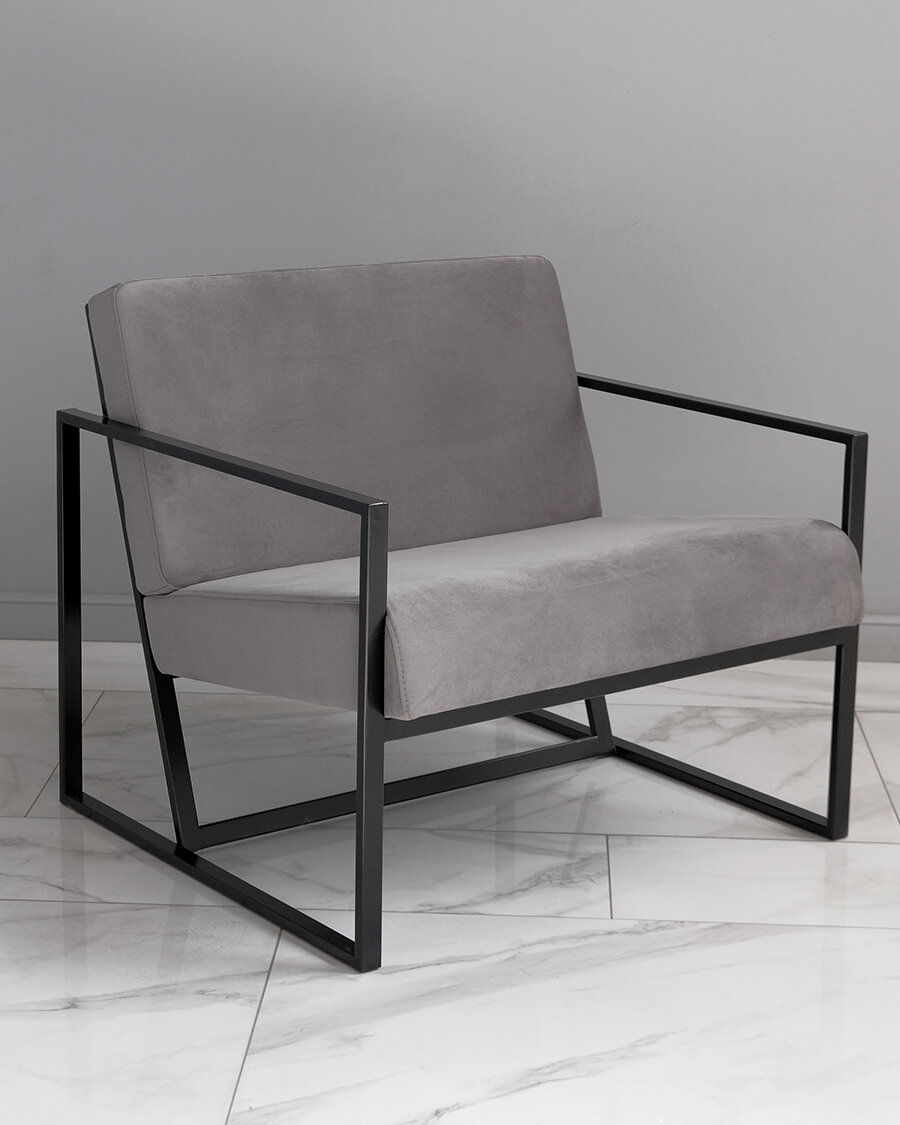 Купить Кресло лофт серый на черном каркасе Johny Wood для салона красоты, в зону ожидания и для дома с доставкой по всей России.