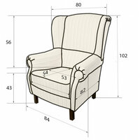 Размеры кресла: Ш84 х Г82 х В102 см глубина сиденья 54 см ширина сиденья 52 см ширина сиденья возле спинки 45 см высота сиденья - 42,5 см высота подлокотников 20 см высота ножек - 14,5см Каркас: массив дерева Наполнитель: независимый пружинный блок, высокоэластичный ППУ Макс. нагрузка, 120 кг Ножки: массив дерева, цвет темно коричневый Форма поставки: в собранном виде Материал обивки: гобелен Состав обивки: 70% хлопок, 30% полиэфир Плотность: вес 650 г. на м. п. Износоустойчивость 25 0000 циклов по Мартиндейлу. Если вы ищете удобное кресло для отдыха, обратите внимание на модели в гобелене. Такие кресла не только стильные, но и практичные, идеально вписывающиеся в любой интерьер. Гобеленовая обивка придаёт мебели этнический стиль, что делает её уникальной и привлекательной.