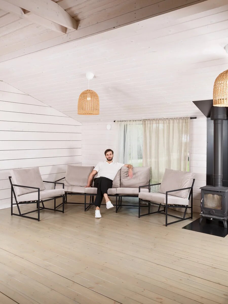 Кресло мягкое в гостиную ZASIDELIS модель Chill с пуфом для ног, на балкон, для дома, для отдыха в спальню, для кухни, интерьерное лофт, кухонное дизайнерское, деревянное 1 шт.