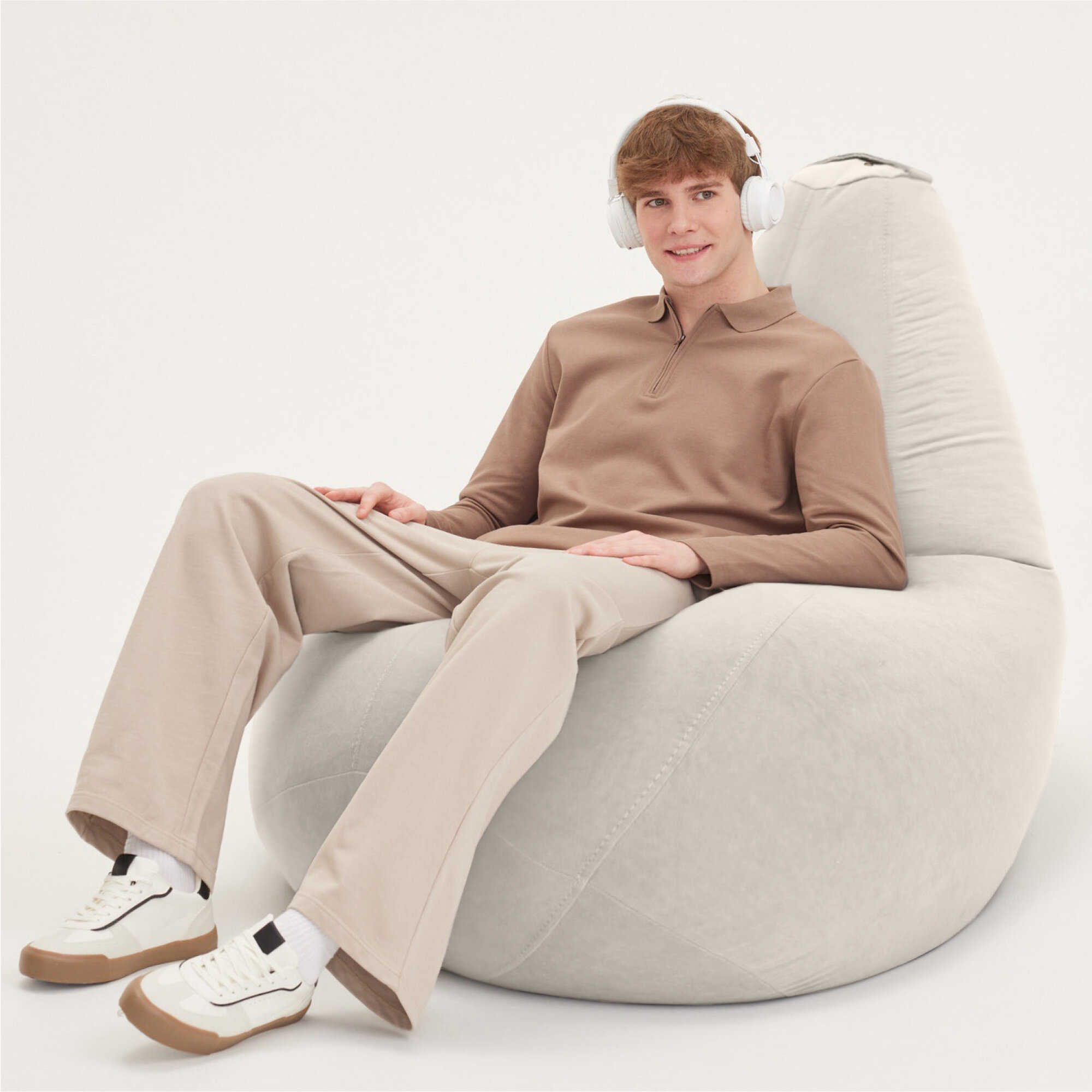 Купить Кресло мешок Bean Joy, пуфик мешок, бескаркасное кресло, размер 4XL, мебельный велюр, латте с доставкой по всей России.