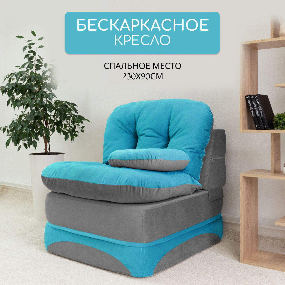 Купить Кресло мешок бескаркасный 90*95 см с матрасом, спальное место 90*230 см, бирюзовый с серым с доставкой по всей России. Кресло мешок бескаркасный 90*95 см с матрасом, спальное место 90*230 см, бирюзовый с серым: сравнение цен, характеристики, фото, актуальное наличие и цены.