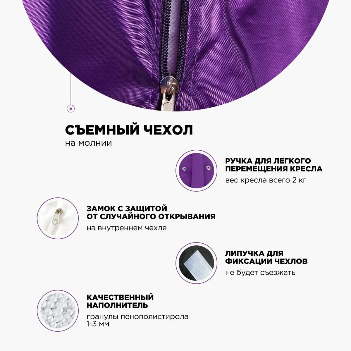 Кресло Мешок Фиолетовое Оксфорд 2XL комфортное, большое, мягкое, бескаркасное для балкона и лоджии, пуфик мешок на подарок для взрослых детей и подростков