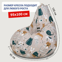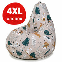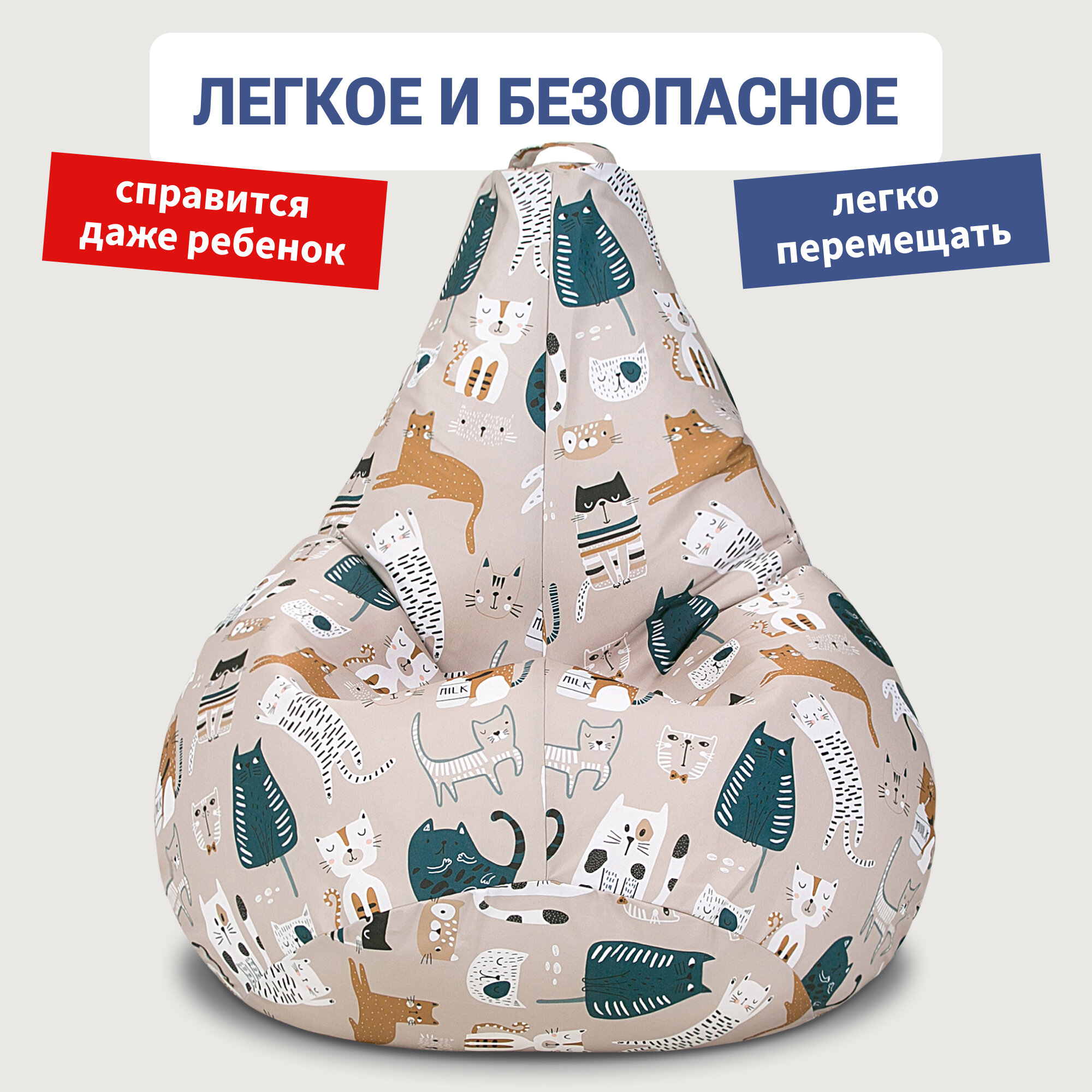 Купить Кресло мешок Bean Joy, пуфик мешок, бескаркасное кресло, размер 4XL, мебельный хлопок, Коты непоседы бежевые с доставкой по всей России.