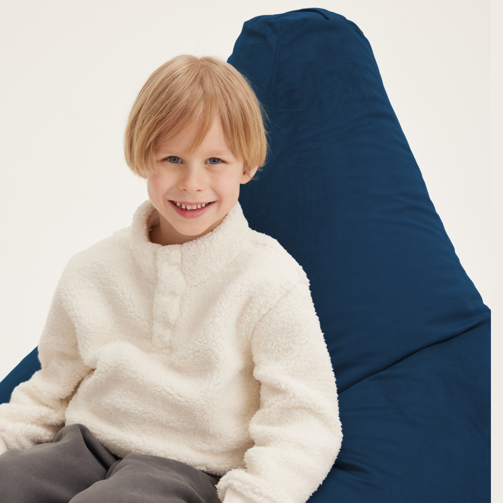 Купить Кресло мешок Bean Joy, пуфик мешок, бескаркасное кресло, размер ХXL, мебельный велюр, темно-синий с доставкой по всей России.
