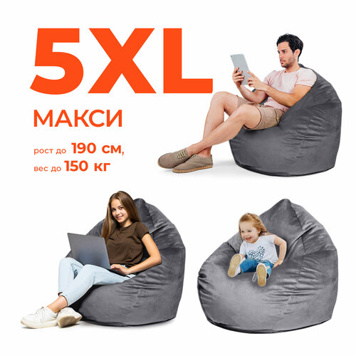 Кресло-мешок игровое WOWPUFF «МАКСИ», XXXXXL, велюр, цвет графит, съемный чехол: сравнение цен, характеристики, фото, актуальное наличие и цены.