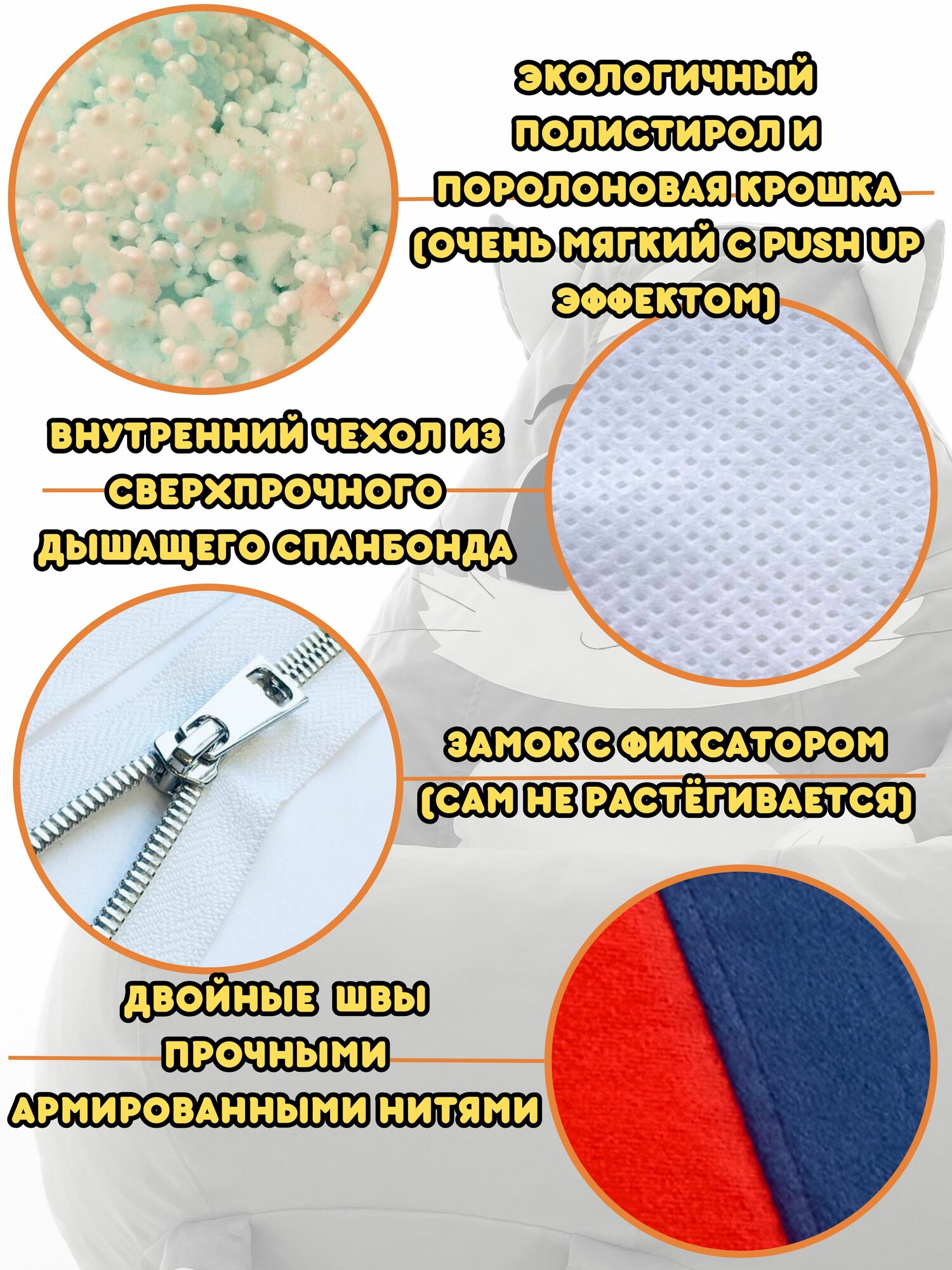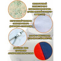 - наполнитель - шарики пенополистирола в сочетании с поролоновой крошкой и синтепоном, что при взаимодействии друг с другом позволяет шарикам давать усадку в разы медленнее и избежать частой покупки наполнителя для досыпки
