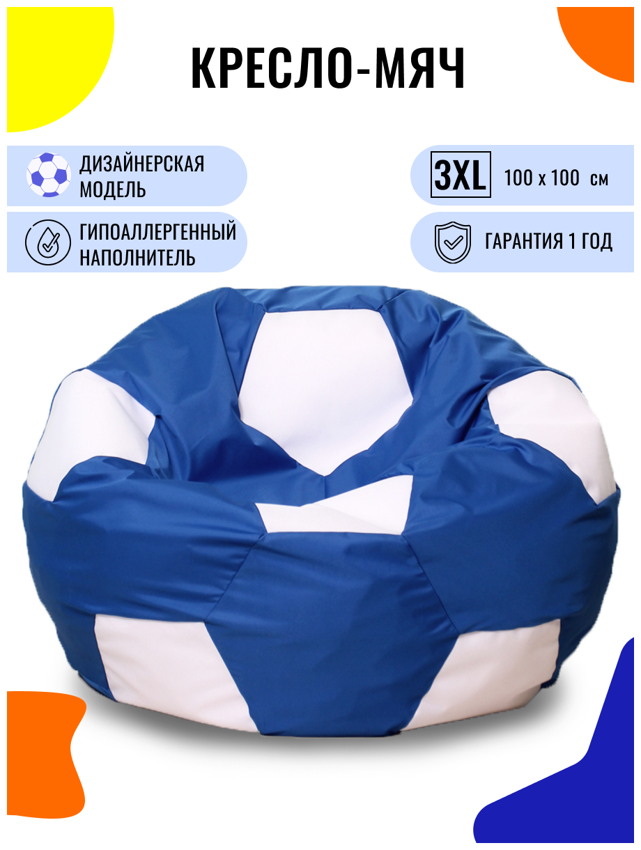 Кресло-мешок Мяч PUFON размер 3XL, Комфорт синий/белый, дюспо: сравнение цен, характеристики, фото, актуальное наличие и цены.