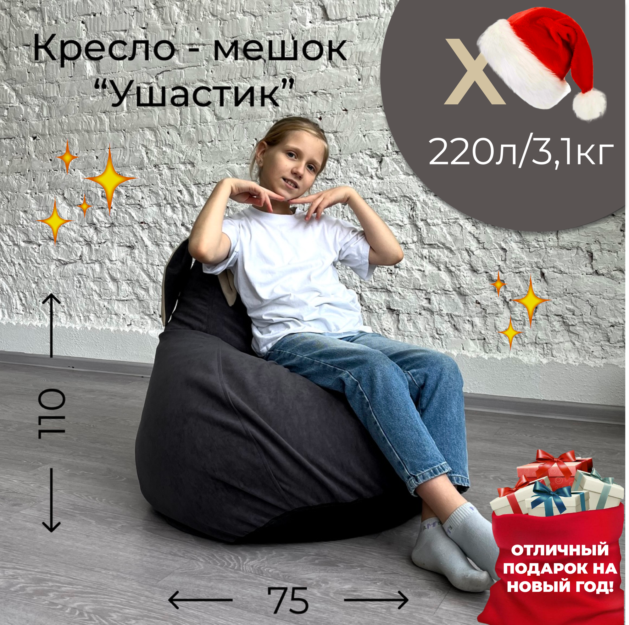 Кресло-мешок мягкое Ушастик, ткань велюр, цвет серый, размер XL: сравнение цен, характеристики, фото, актуальное наличие и цены.