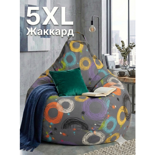 Бескаркасное мягкое кресло-мешок «Груша» большого размера 5XL из высокопрочной ткани Жаккард подходит для детей и взрослых, на нем даже можно сидеть вдвоем.