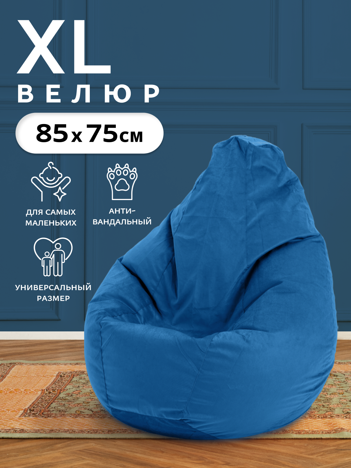 Кресло-мешок Пуффбери «Груша», размер XL маленький, Велюр Голубой: сравнение цен, характеристики, фото, актуальное наличие и цены.