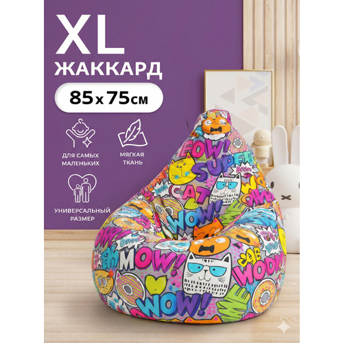 Бескаркасное мягкое кресло-мешок «Груша» компактного размера XL из высокопрочной ткани Жаккард идеально подходит для детей.