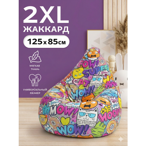 Бескаркасное мягкое кресло-мешок «Груша» стандартного размера XXL из высокопрочной ткани Жаккард подходит для детей и взрослых.