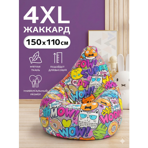 Бескаркасное мягкое кресло-мешок «Груша» большого размера XXXXL из высокопрочной ткани Жаккард подходит для детей и взрослых, на нем даже можно сидеть вдвоем.