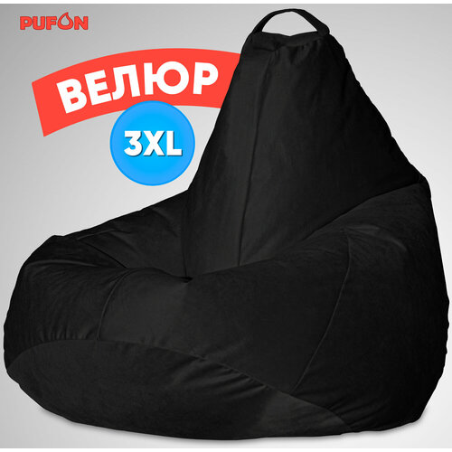Купить Кресло-мешок PUFON груша размер 3XL , черный , материал велюр с доставкой по всей России.