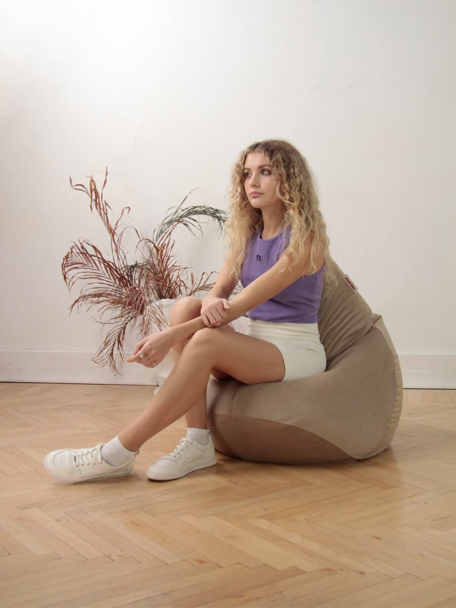 Купить Кресло-мешок FENJOYS груша размер XL, бежевый, материал велюр с доставкой по всей России.