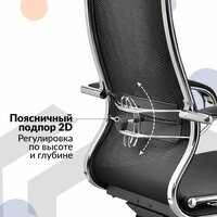 | Дополнительная информация | Раздельное синхронное отклонение спинки и сиденья (Sinhromechanism) позволяет глубоко откинуться в кресле в полулежачее положение с сохранением устойчивости. В результате позвоночник разгружается, мышцы живота расслабляются, восстанавливается естественное кровообращение всех "застойных" зон тела. |