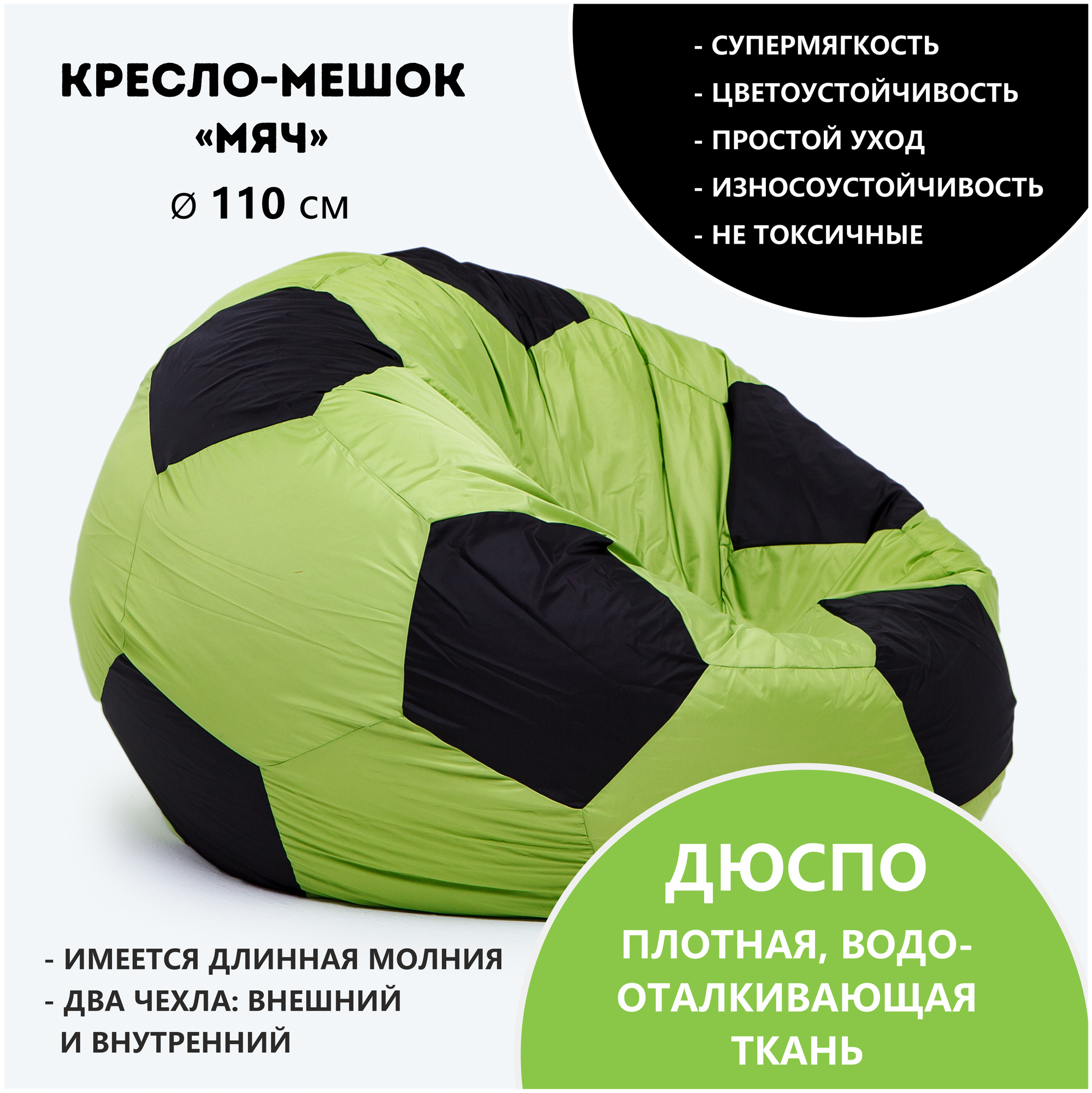 Купить Кресло-мяч АртБинБэг, ткань оксфорд, зелено-черный, размер XXL, 110 см с доставкой по всей России. Кресло-мяч АртБинБэг, ткань оксфорд, зелено-черный, размер XXL, 110 см: сравнение цен, характеристики, фото, актуальное наличие и цены.