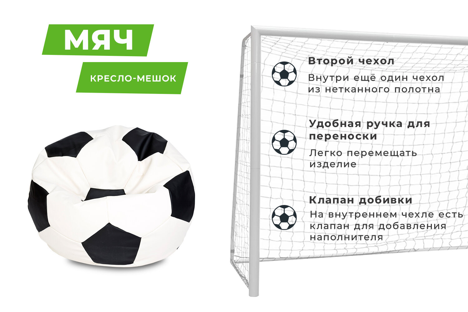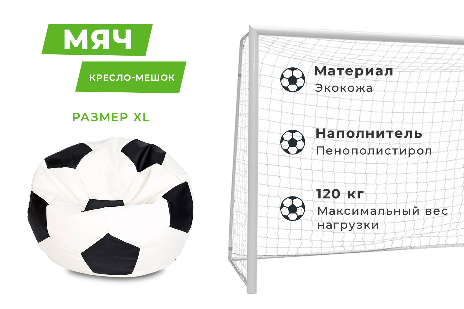 Купить Кресло — Мяч, Экокожа бело-чёрный, большой XXXL с доставкой по всей России. Кресло — Мяч, Экокожа бело-чёрный, большой XXXL: сравнение цен, характеристики, фото, актуальное наличие и цены.