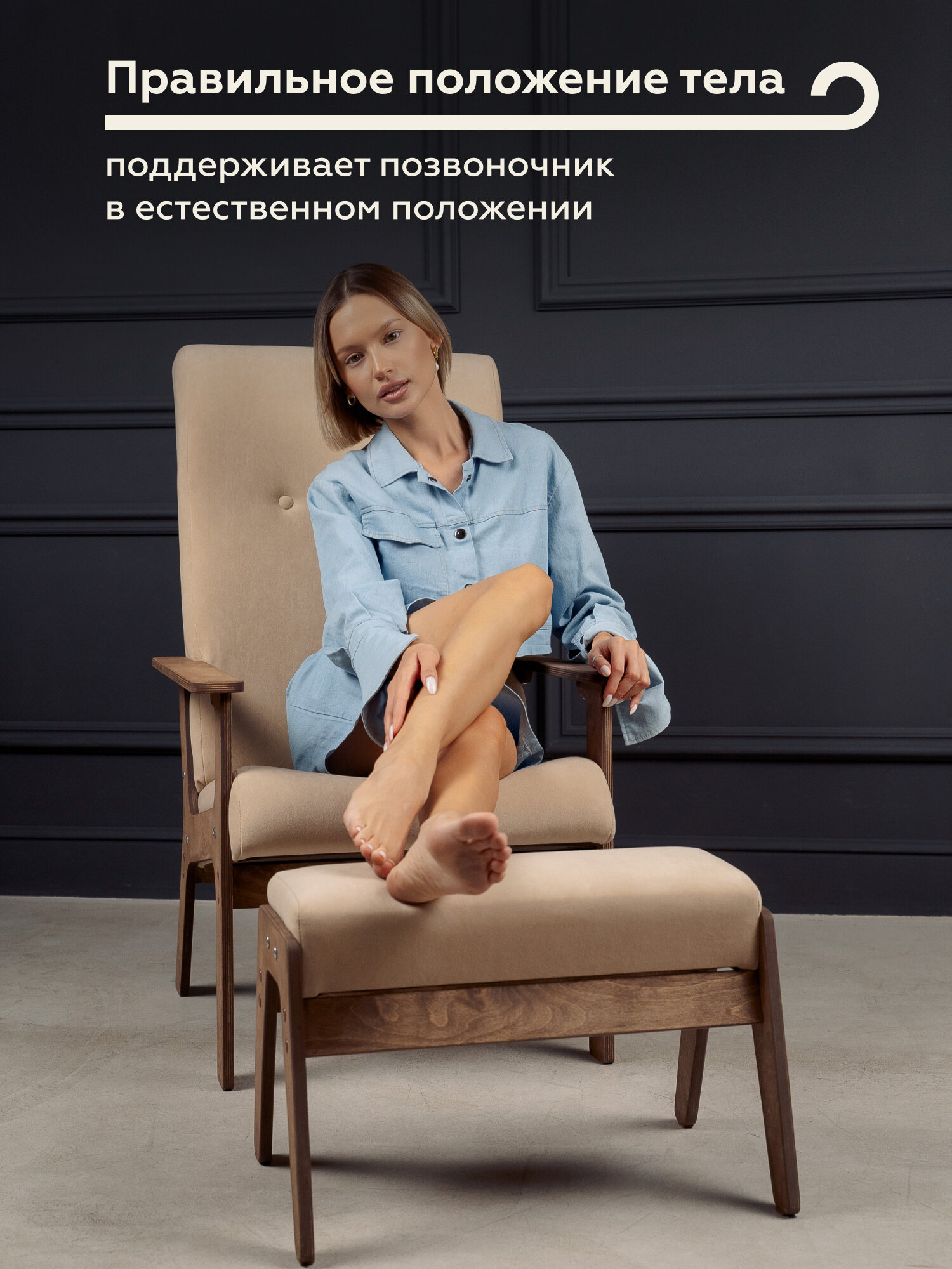 Комплект кресло «ретро» с высокой спинкой с пуфиком для ног, обивка бежевый велюр: сравнение цен, характеристики, фото, актуальное наличие и цены.