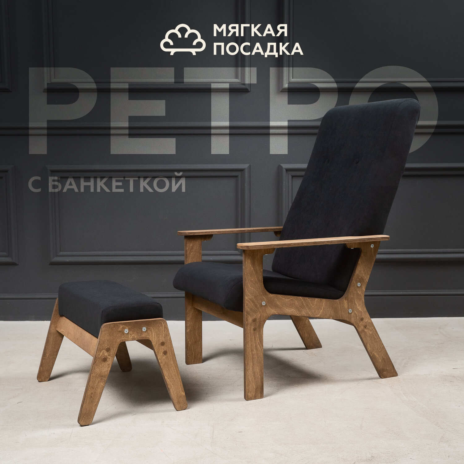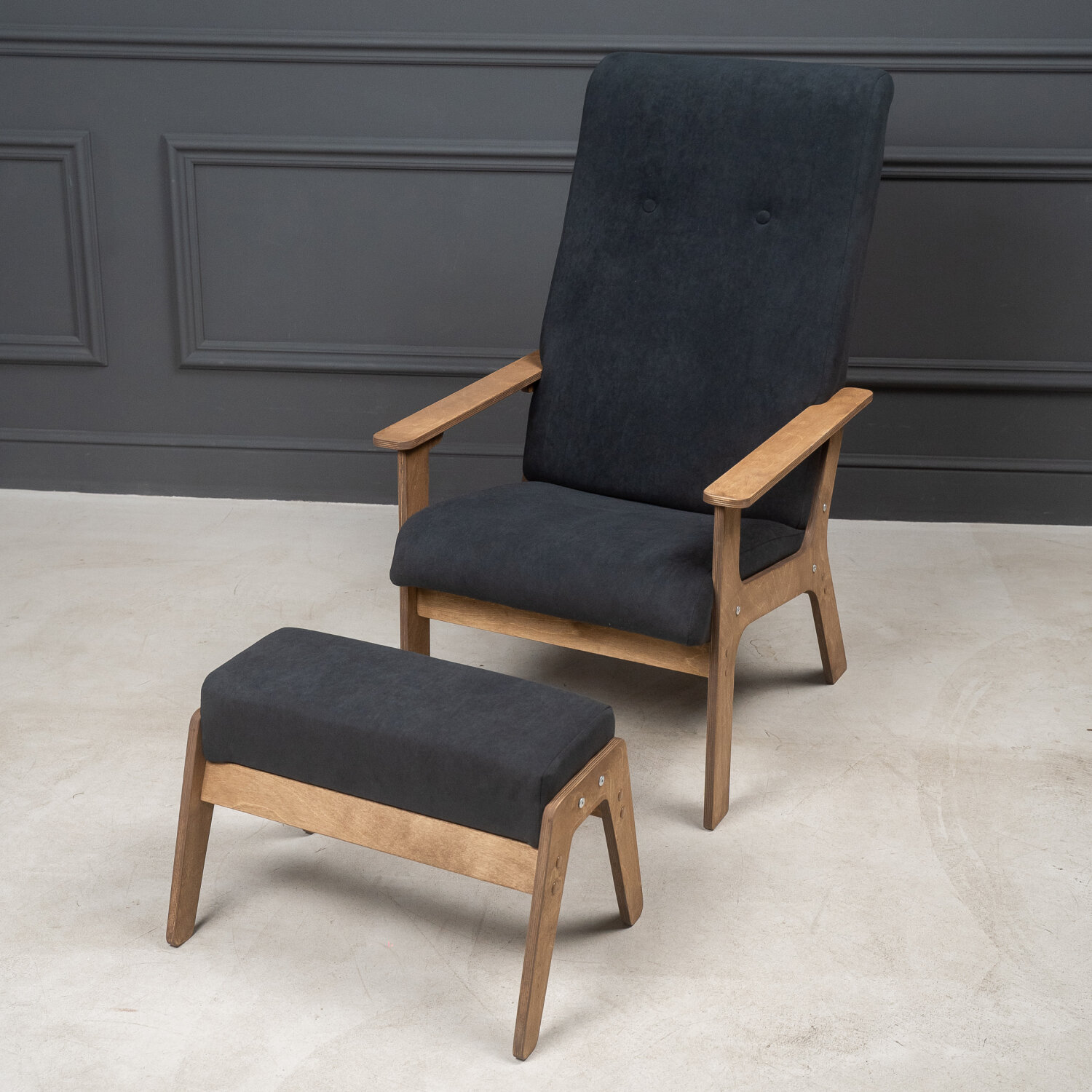 Купить Комплект кресло «РЕТРО» с высокой спинкой с пуфиком для ног, обивка черный велюр с доставкой по всей России.