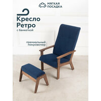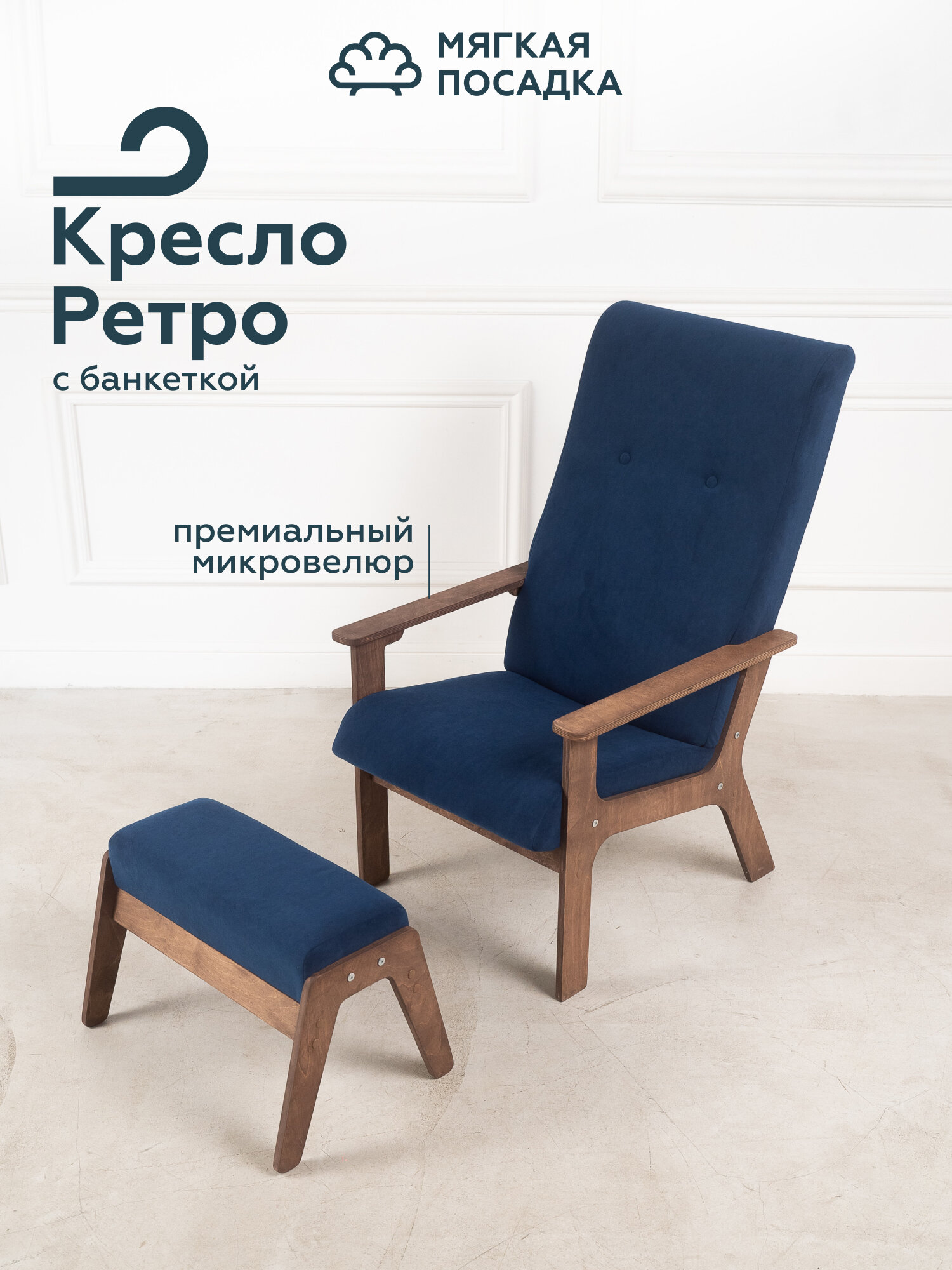 Комплект кресло «РЕТРО» с высокой спинкой с пуфиком для ног, обивка синий велюр: сравнение цен, характеристики, фото, актуальное наличие и цены.