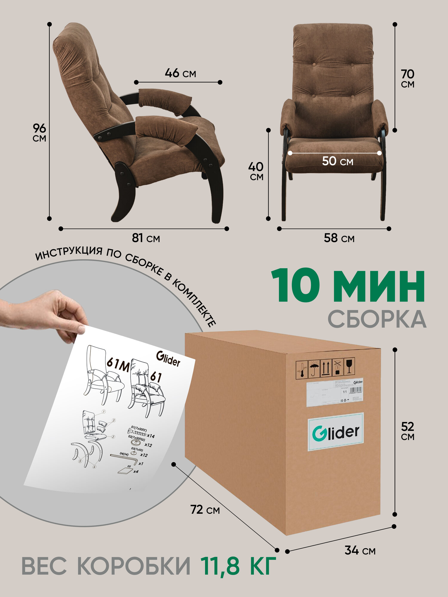 Кресло мягкое для отдыха, дома и дачи Glider 61 с мягкими подлокотниками, цвет шоколадный/черный: сравнение цен, характеристики, фото, актуальное наличие и цены.