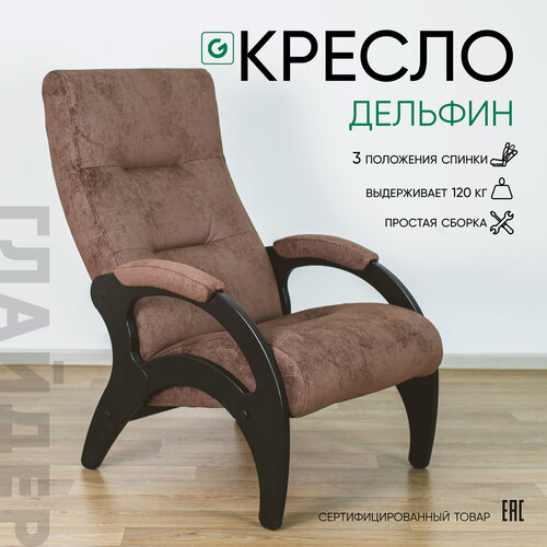 Купить Кресло мягкое для отдыха, дома и дачи Glider Дельфин с мягкими подлокотниками и регулируемой спинкой 3 положения, цвет коричневый с доставкой по всей России.