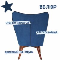 Кресло мягкое интерьерное для дома Нагария ткань велюр Ultra темно-синий орех: сравнение цен, характеристики, фото, актуальное наличие и цены.