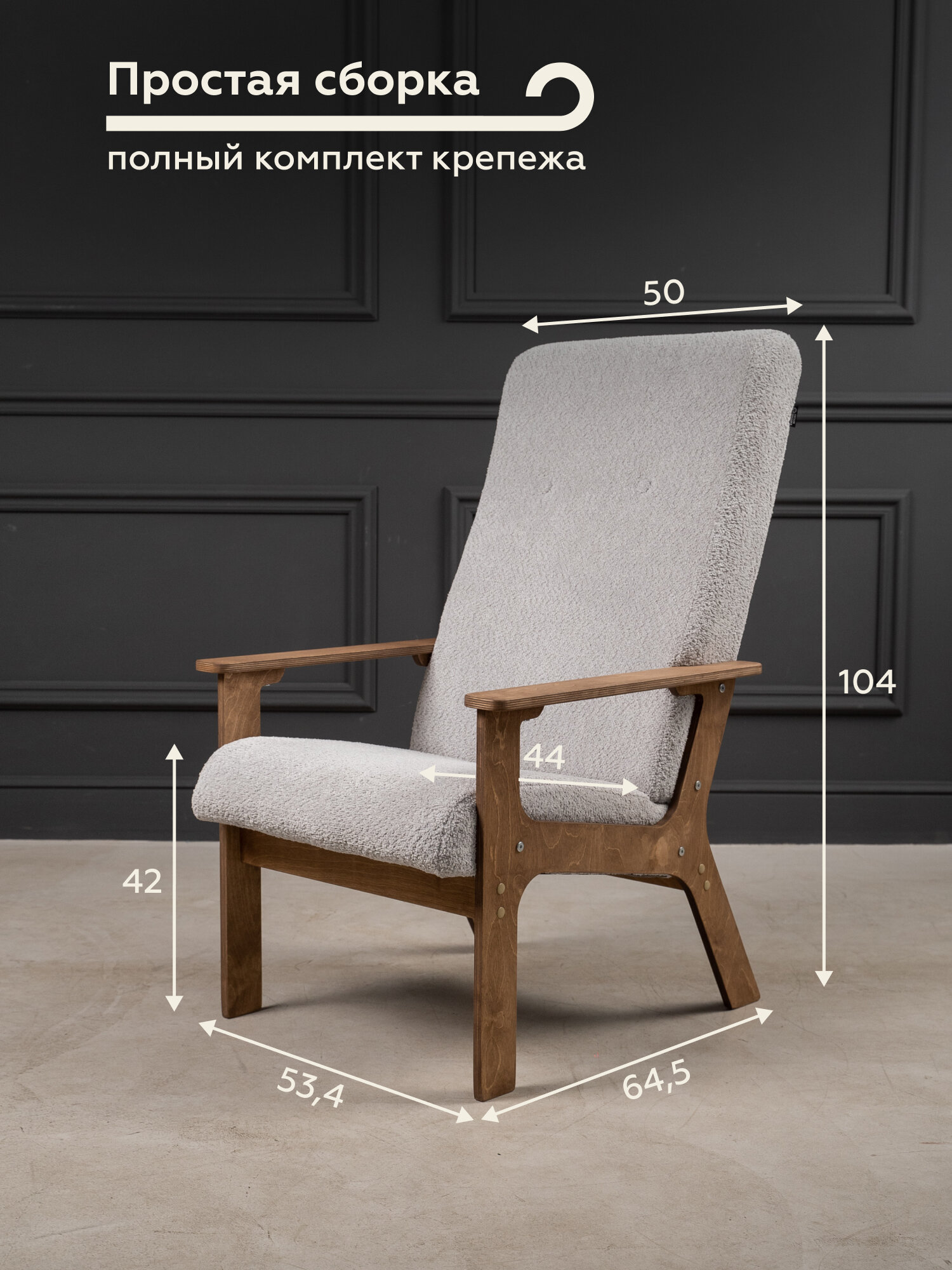 Комплект кресло «РЕТРО» с высокой спинкой с пуфиком для ног, обивка серое букле: сравнение цен, характеристики, фото, актуальное наличие и цены.